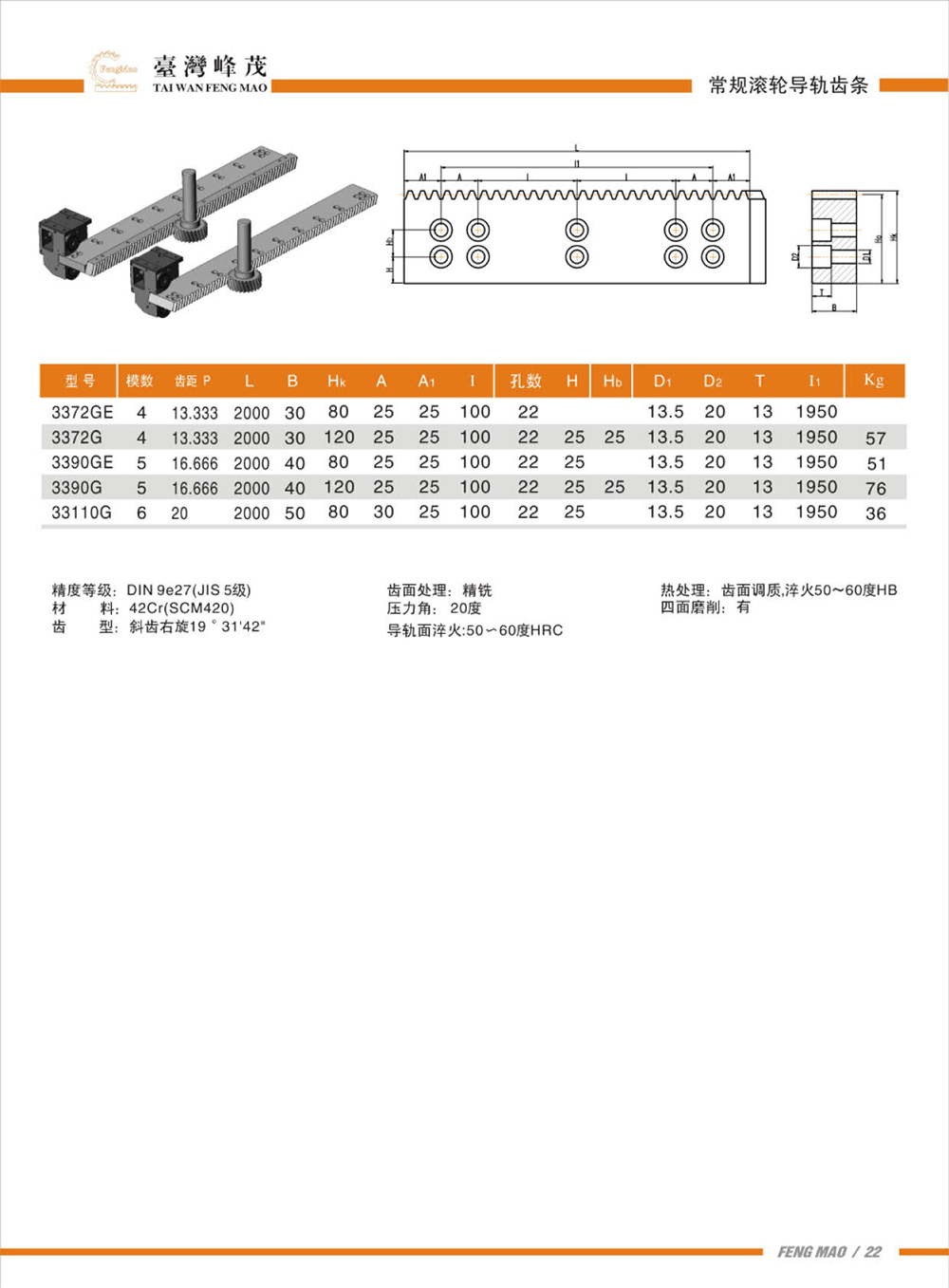• 重載滾輪導軌 DIN 7e25(JIS 5級)(斜齒)
